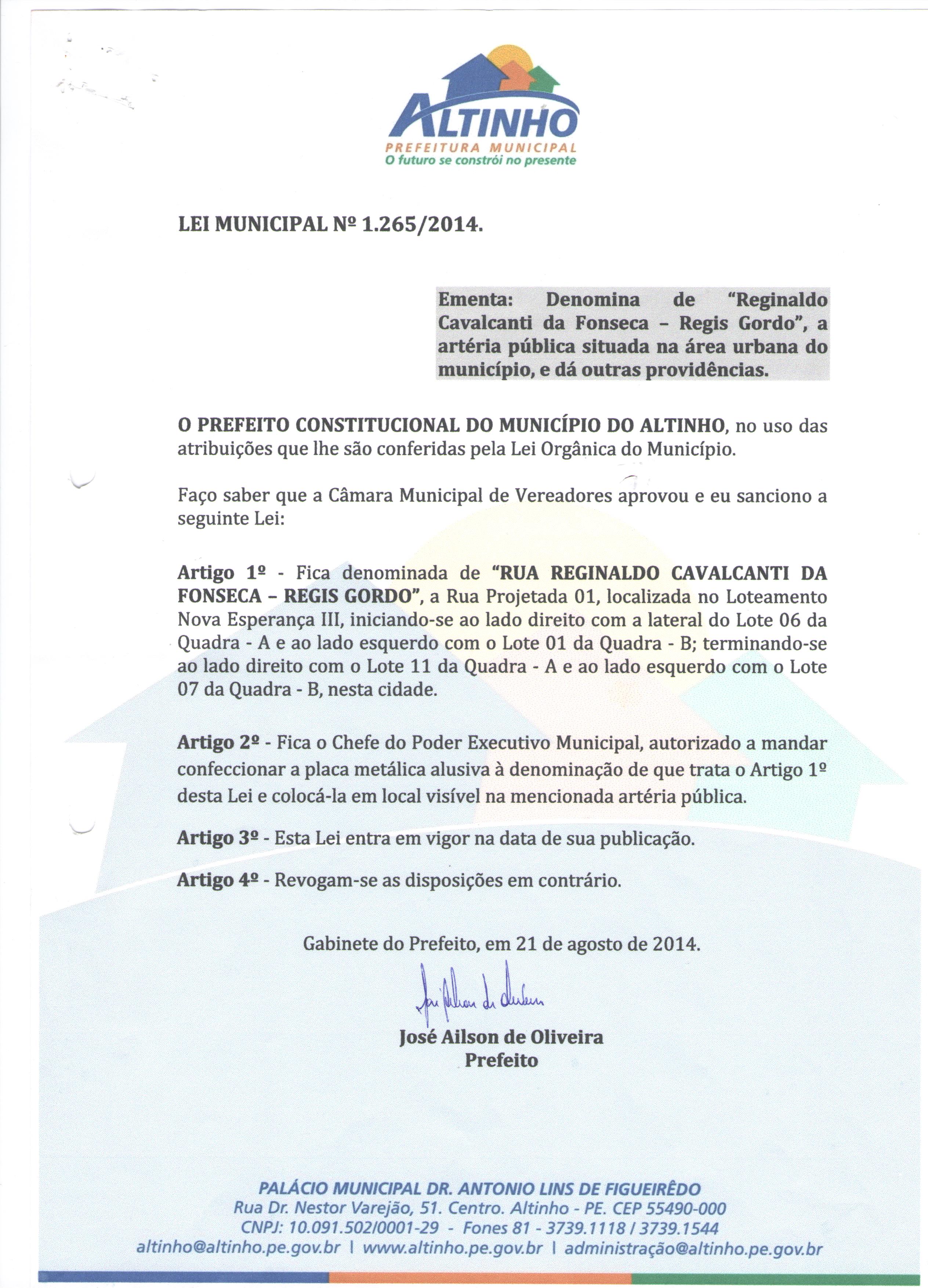 Lei Complementar 034 - Dispõe sobre o Programa de Estímulo a Regularização Fiscal de Contribuintes do Município de Altinho - PE - REFIS MUNICIPAL 2022 e dá outras providências.